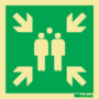 Stærð 300 * 300 mm. Merki sem sýna söfnunarstað eru nauðsynleg þar sem þau veita upplýsingar um hvar viðeigandi söfnunarstaður ef til neyðarrýmingar kemur. Ef einhver er týndur er hægt að skipuleggja leit að þeim sem er týndur. Sjónarhorn á merkið er 90°. Flóttamerki eru í samræmi við Heilbrigðis- og Öryggisreglugerð 1996 og tilskipun Evrópuráðs 92/58/EEC. Nauðsynlegt er að gæta þess að flóttaleiðamerki séu vel sýnileg, og sýni skilmerkilega hver flóttaleiðin er. Þessar upplýsingar eru veittar með því að nota flóttaleiðarskilti meðfram flóttaleið.